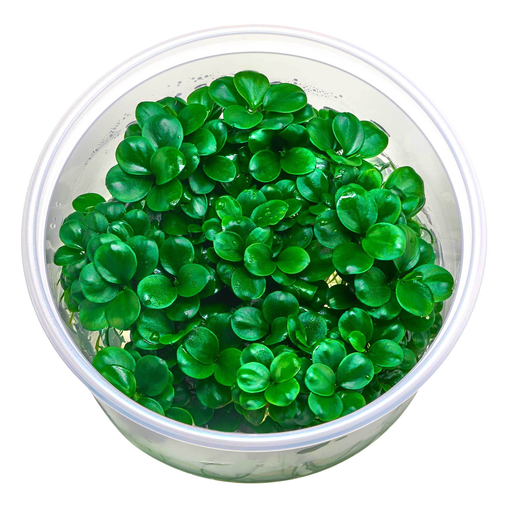 Die 'Mini Coin' mit ihren runden, dunkel- bis mittelgrünen Blättern lässt sich leicht auf Steinen oder Wurzeln befestigen und fügt sich harmonisch in Hardscapes ein. Sie bringt Tiefe und Struktur ins Layout und verleiht auch größeren Becken durch die Anordnung im Vordergrund oder die Kombination mit größeren Anubias eine besondere Tiefenwirkung.
