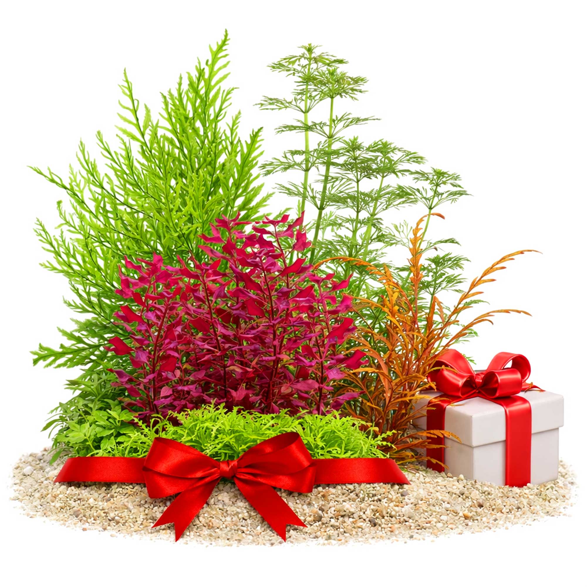 Das Überraschungspaket ist perfekt geeignet, um deinem Aquarium den richtigen Start zu ermöglichen oder bereits laufende Aquarien mit neuem Pflanzenwachstum aufzupeppen. Die Pflanzen werden in großen in vitro XL 8,5 cm Bechern geliefert oder du erhältst anstelle dessen zwei 5,5cm Becher.