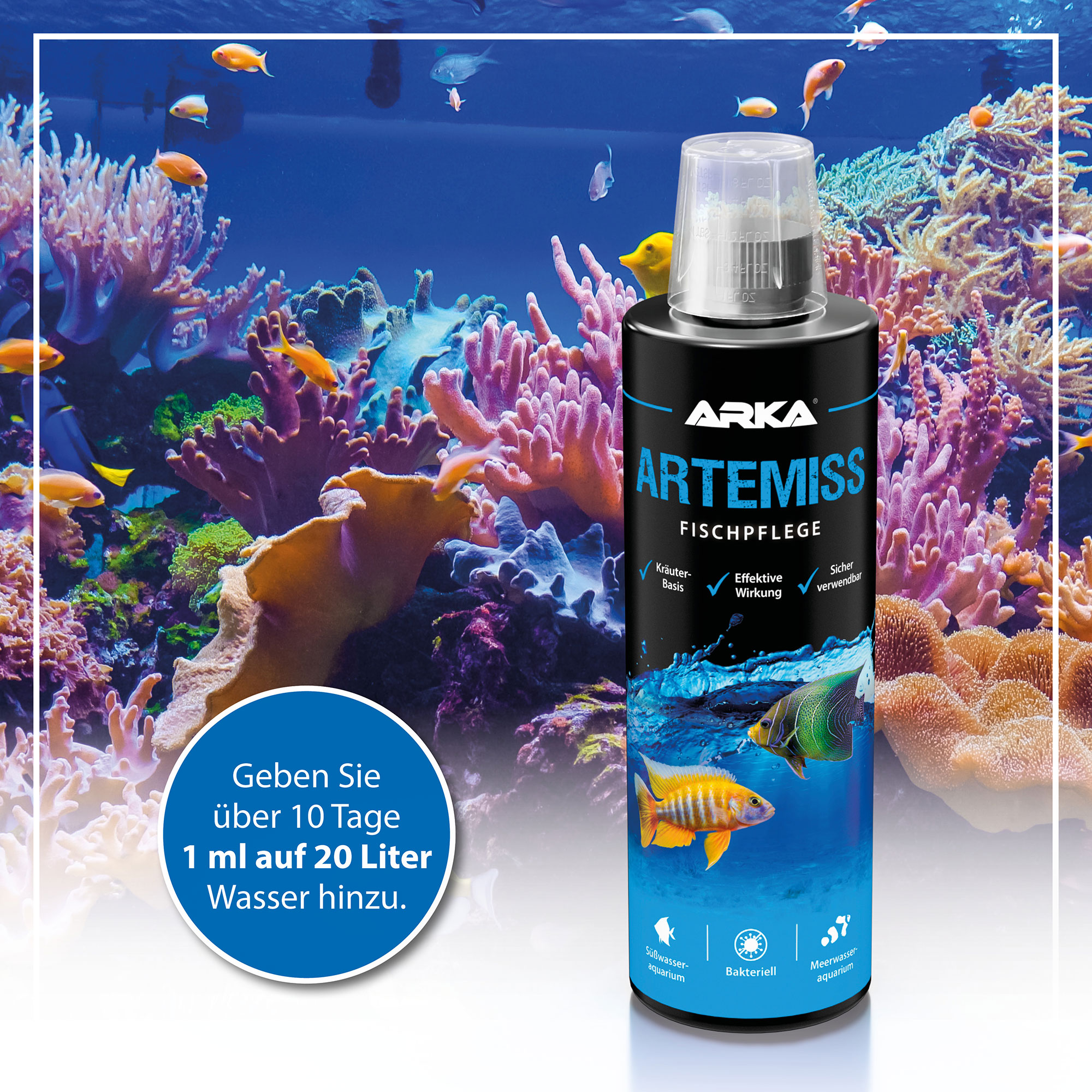 Artemiss besteht ausschließlich aus natürlichen Kräutern und ist damit völlig biologisch. Es ist unschädlich für alle Meer- und Brackwasserfische sowie für Korallen und niedere Tiere in Deinem Aquarium. Du kannst Artemiss bedenkenlos verwenden, um die Gesundheit Deiner Aquarienbewohner zu fördern.