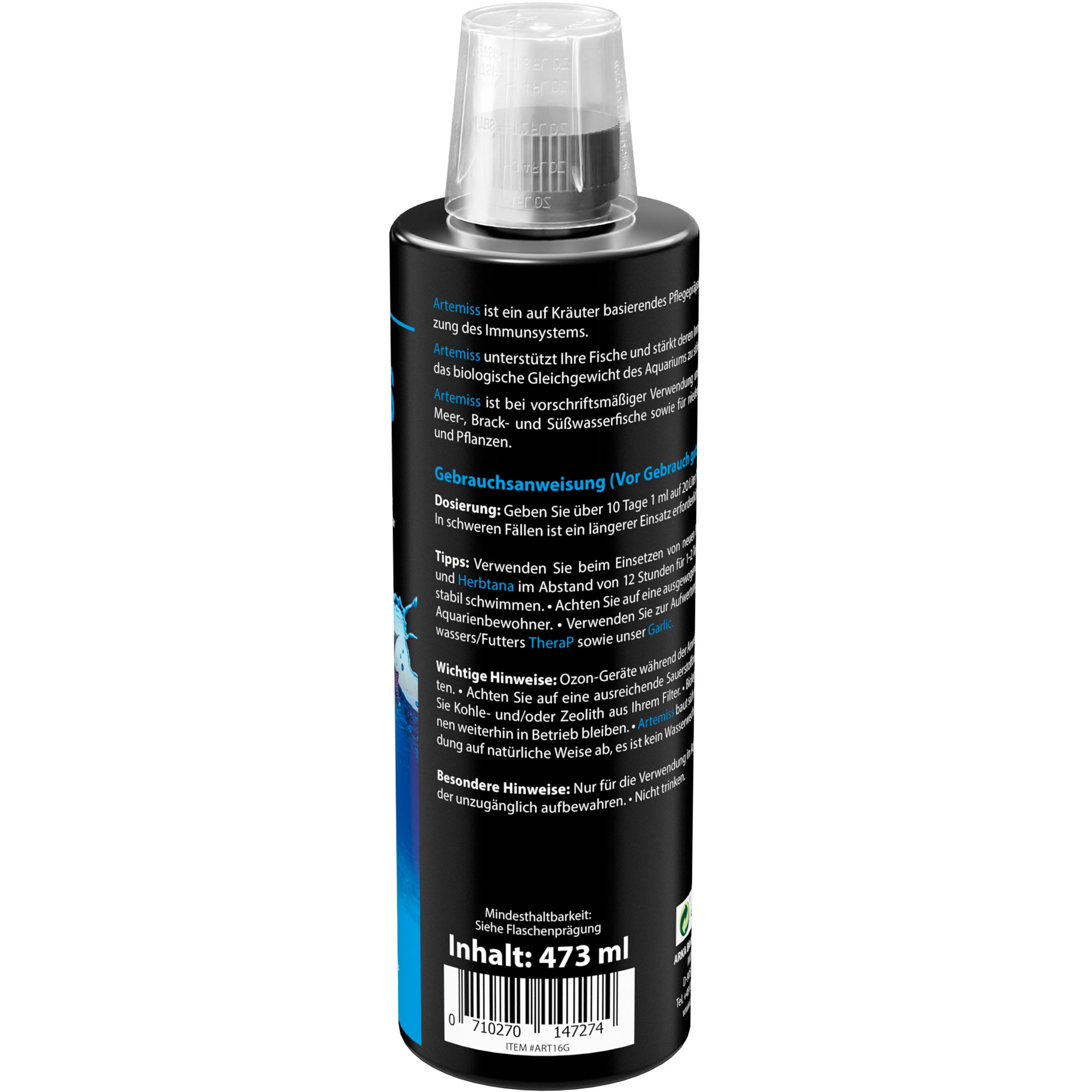 Artemiss ist ein auf Kräuter basierendes Pflegepräparat, das speziell entwickelt wurde, um das Immunsystem Deiner Fische zu unterstützen. Mit seinen 100% biologischen Inhaltsstoffen sorgt Artemiss dafür, dass Deine Fische widerstandsfähiger gegen Stress und Krankheiten sind, ohne das biologische Gleichgewicht Deines Aquariums zu stören.