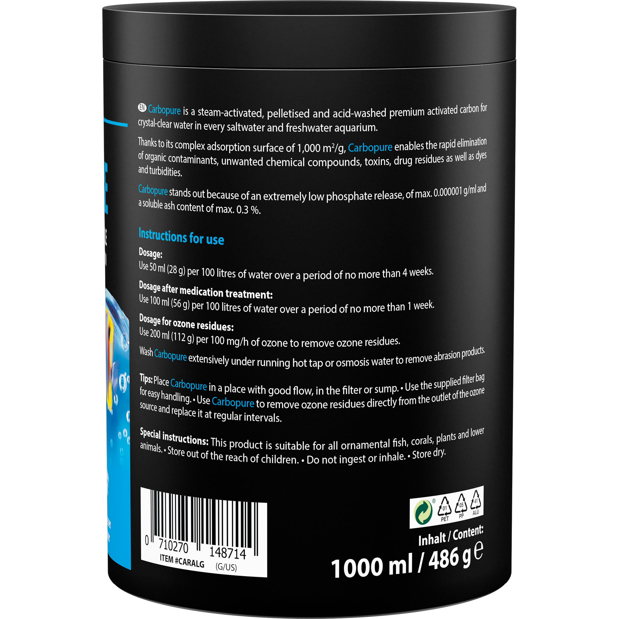 Mit CARBOPURE Premium-Aktivkohle erzielst du eine hervorragende Wasserqualität in deinem Meerwasser- und Süßwasseraquarium. Diese dampfaktivierte, pelletierte und säuregewaschene Aktivkohle entfernt effektiv Verunreinigungen und sorgt für kristallklares Wasser.