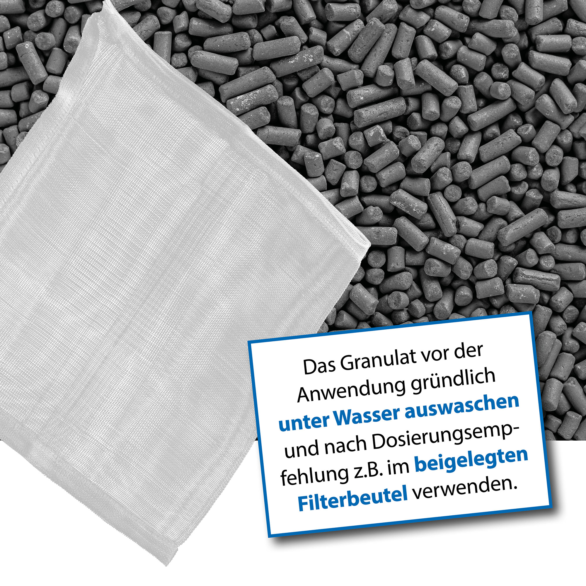 Dank seiner pelletierten Form ist CARBOPURE einfach in der Anwendung und sehr ergiebig. Die Aktivkohle kann problemlos in deinem Filtersystem eingesetzt werden und liefert sofort sichtbare Ergebnisse. Eine Packung enthält 1000 ml Premium-Aktivkohle, die lange vorhält und für eine konstante Wasserqualität sorgt.