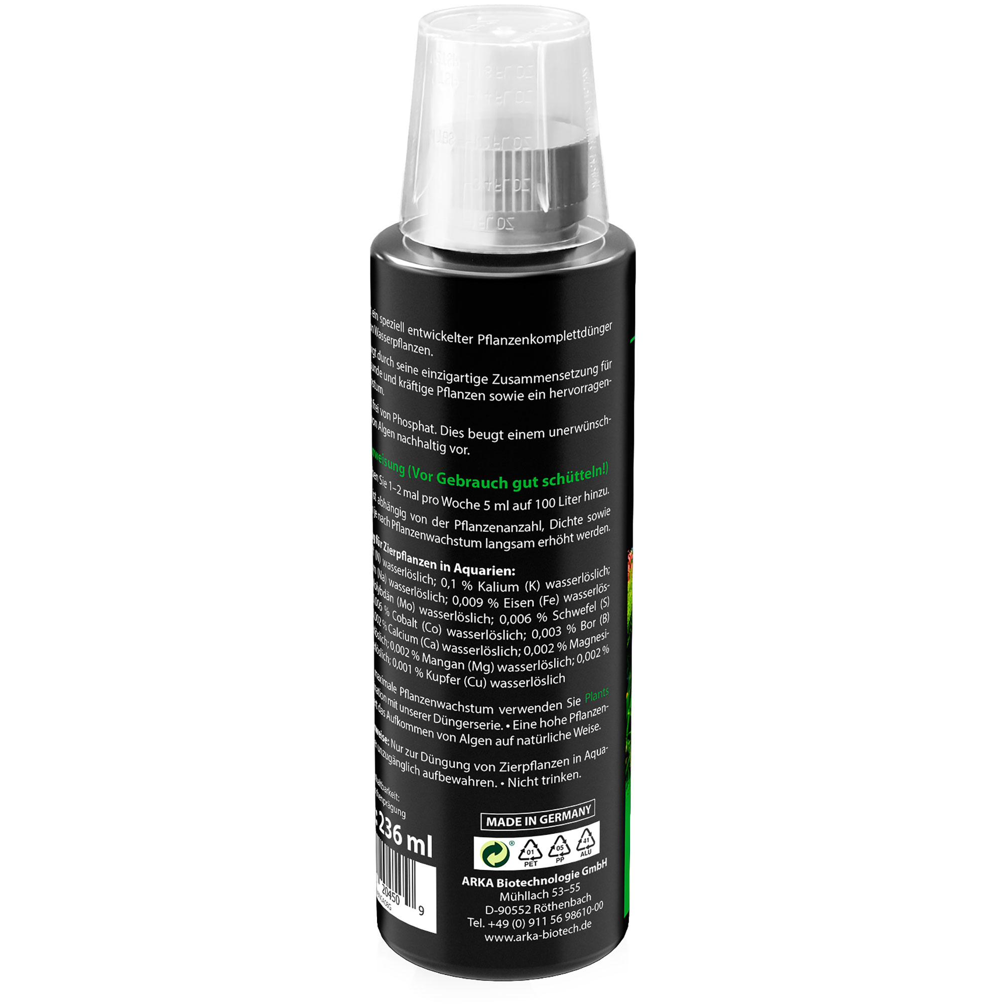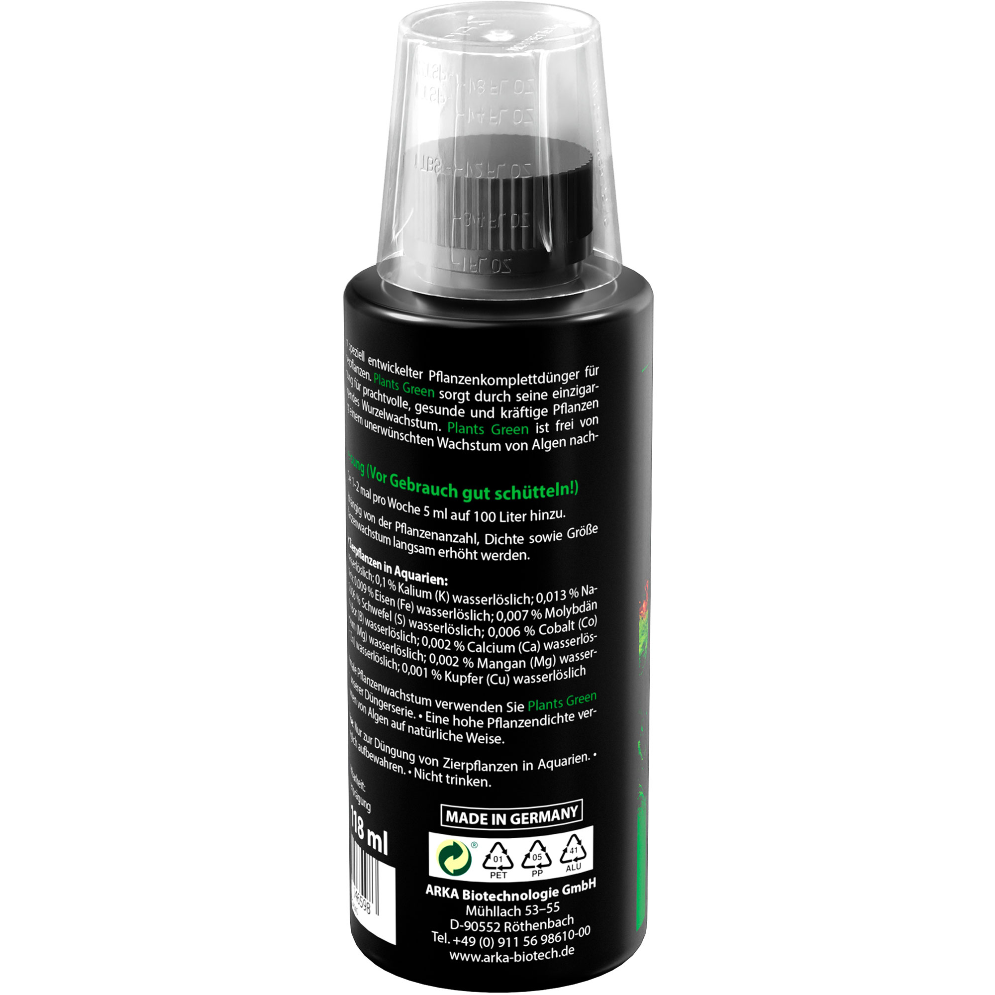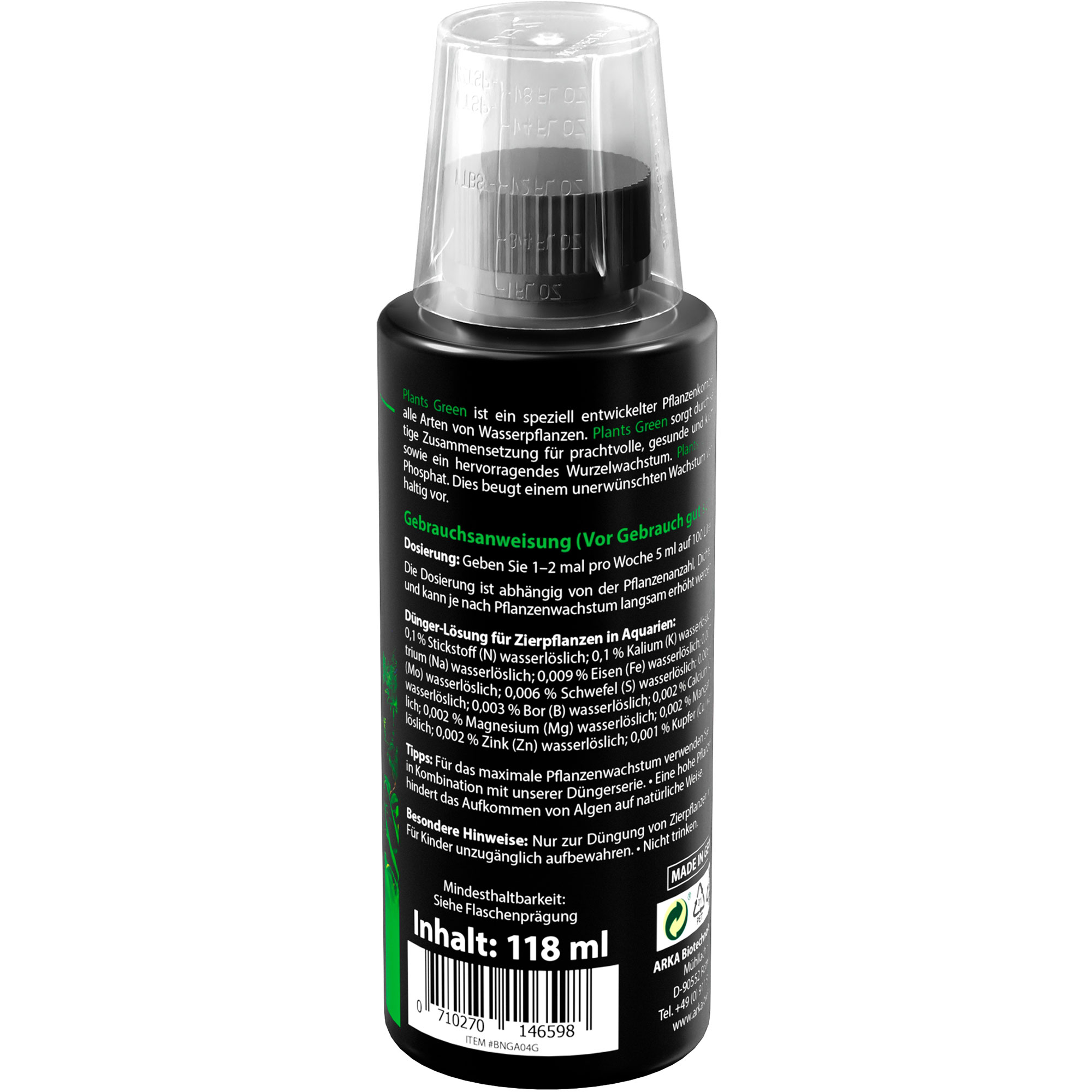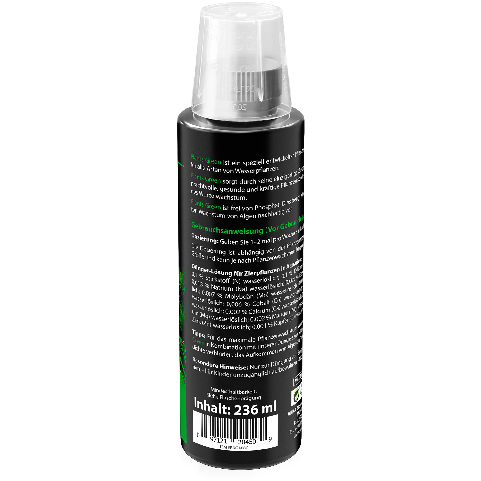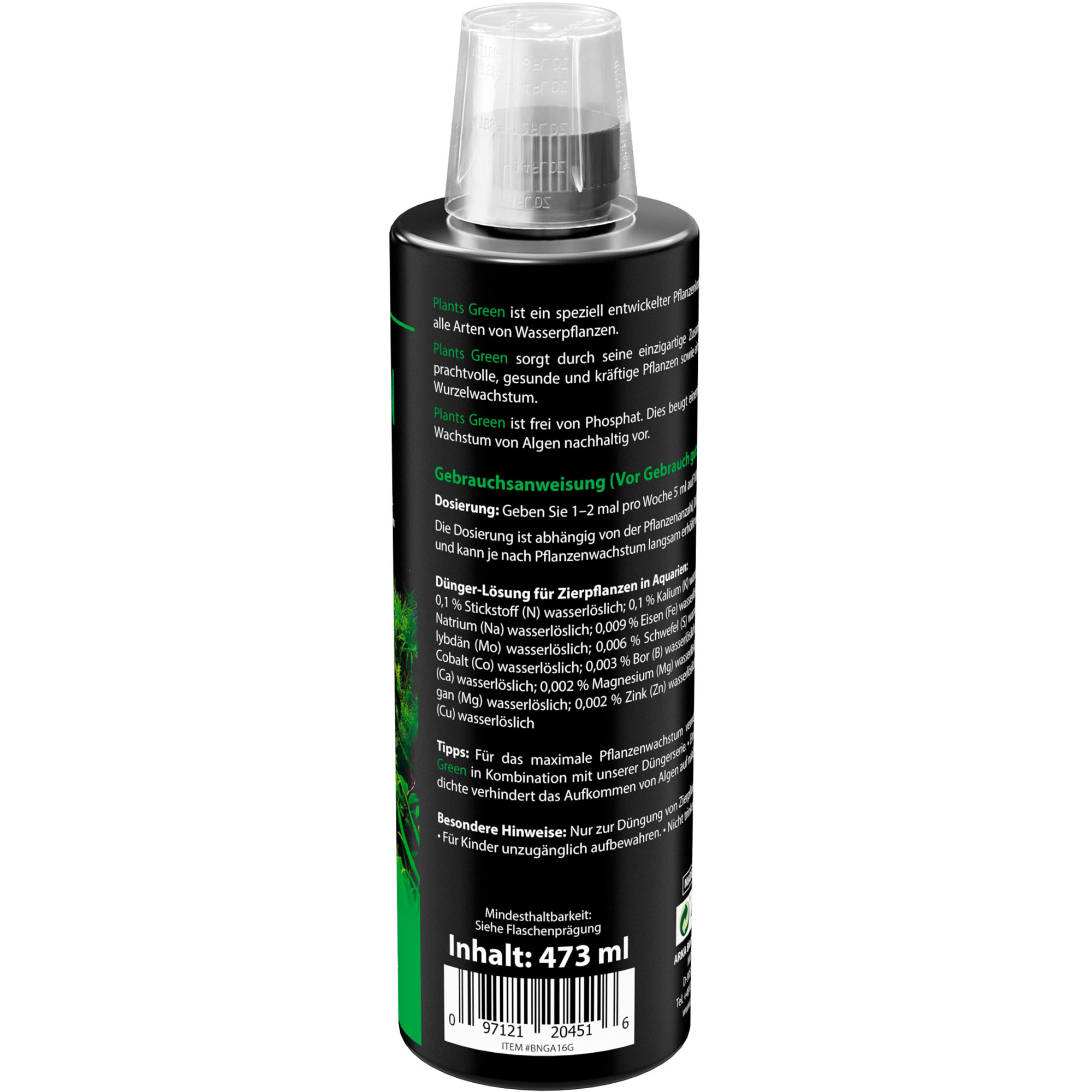 Eines der herausragenden Merkmale von Plants Green ist, dass er nahezu frei von Nitrat und Phosphat ist. Dies beugt unerwünschtem Algenwachstum vor und hilft Dir, ein klares und sauberes Aquarium zu bewahren. Deine Pflanzen erhalten genau die Nährstoffe, die sie brauchen, ohne die Wasserqualität zu beeinträchtigen.