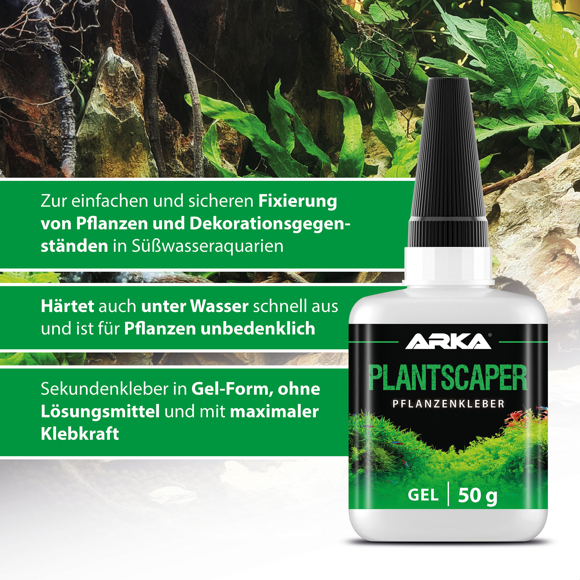 Mit dem ARKA PLANTSCAPER GEL Sekundenkleber kannst du Pflanzen und Dekorationsgegenstände in deinem Süßwasseraquarium schnell und sicher fixieren. Dieses spezielle Gel härtet auch unter Wasser schnell aus und sorgt so für eine zuverlässige und dauerhafte Befestigung.