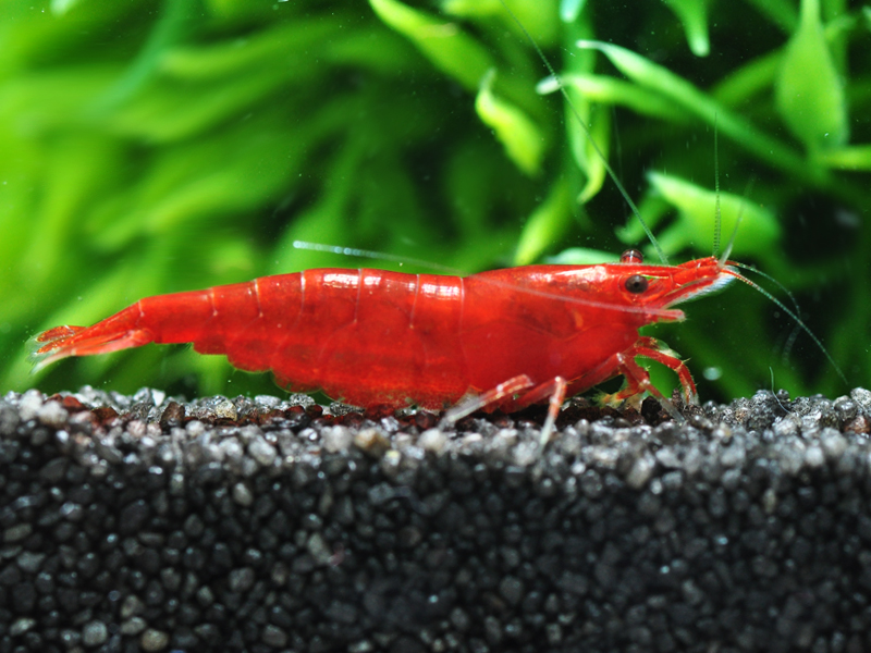 Bei der Bloody Mary liegt die rote Farbe nicht wie bei der Red Sakura in der oberen Pigmentschicht, sondern in der Unterhaut, daher sind diese roten Zwerggarnelen besonders eindrucksvoll rot gefärbt. Ihr tiefer blutroter Farbton hat eine gewisse durchscheinende, leuchtende Qualität. Im direkten Vergleich sieht man den Unterschied zwischen der Bloody Mary und der Red Sakura ziemlich gut.