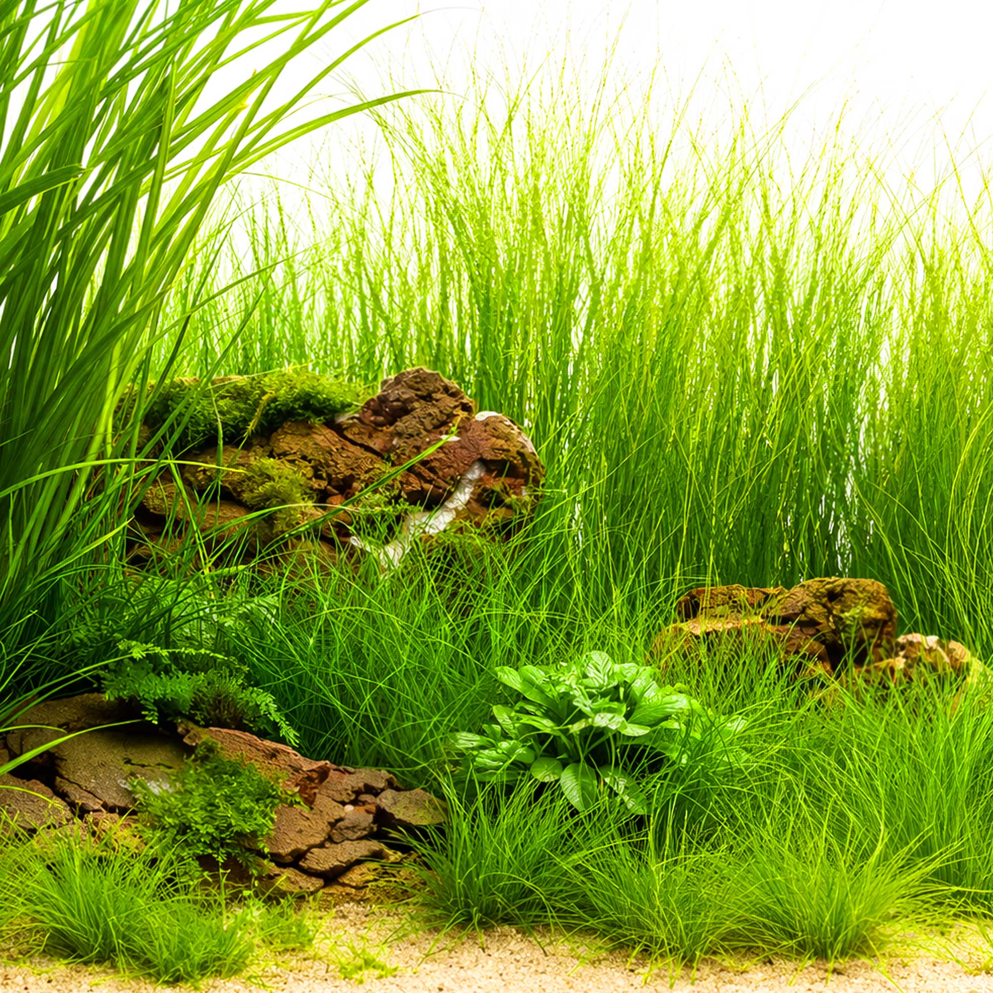 Sattgrüner und dichter Teppich, der deine Iwagumi Steine in Szene setzt