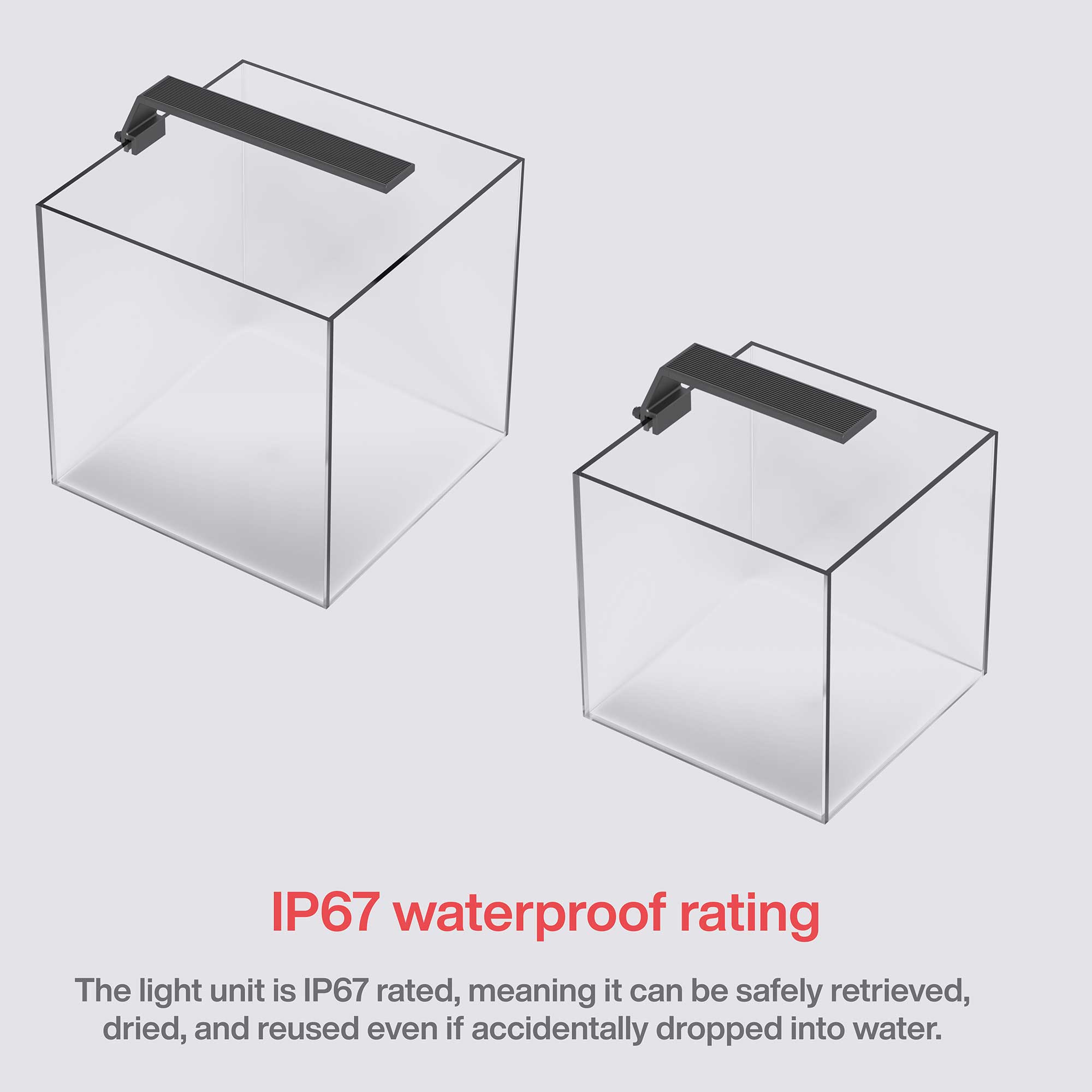 Die Lampe ist wahlweise als Universal RGB Nano 20 (für 20–25 cm Becken) oder Universal RGB Nano 30 (für 30–36 cm Becken) erhältlich und eignet sich perfekt für offene Becken, Wabi-Kusas oder kleine Aquascapes.