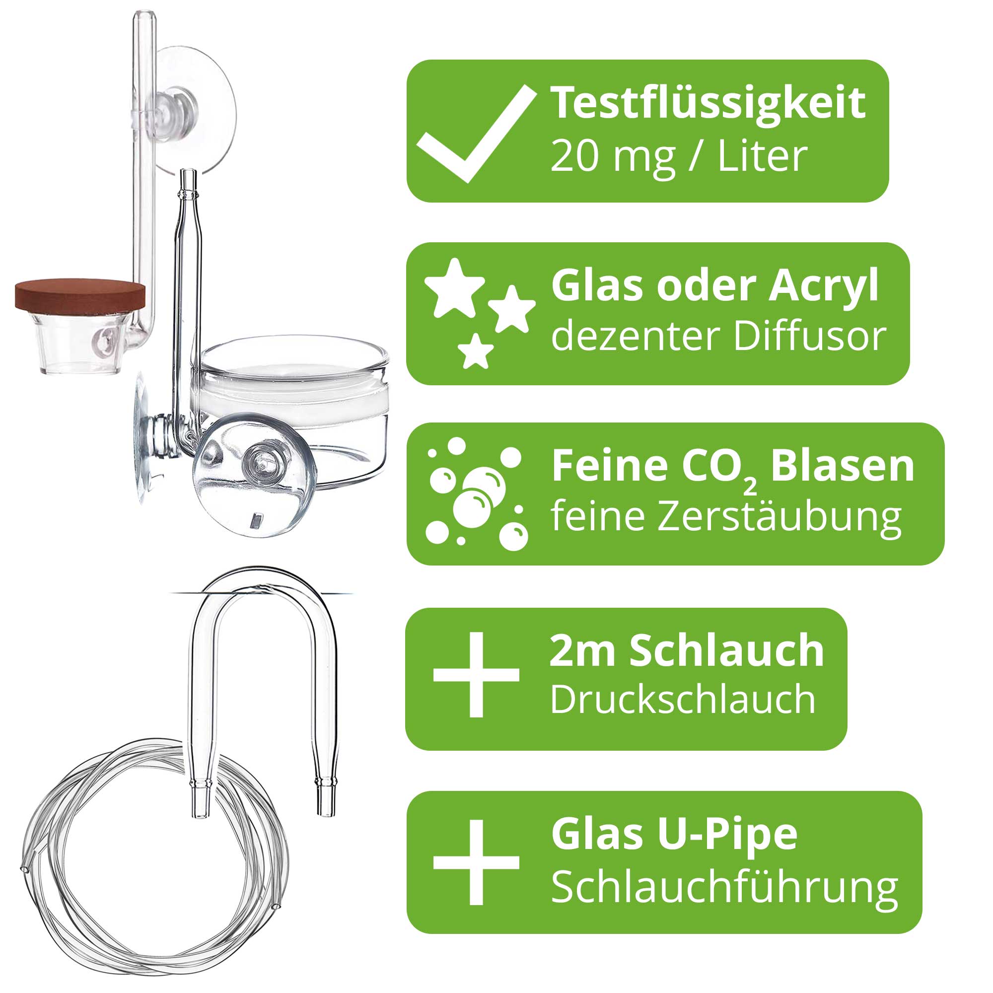 Hochwertige Diffusoren: Glas-Diffusor XL oder Acryl-Diffusor L für optimale CO₂-Verteilung.