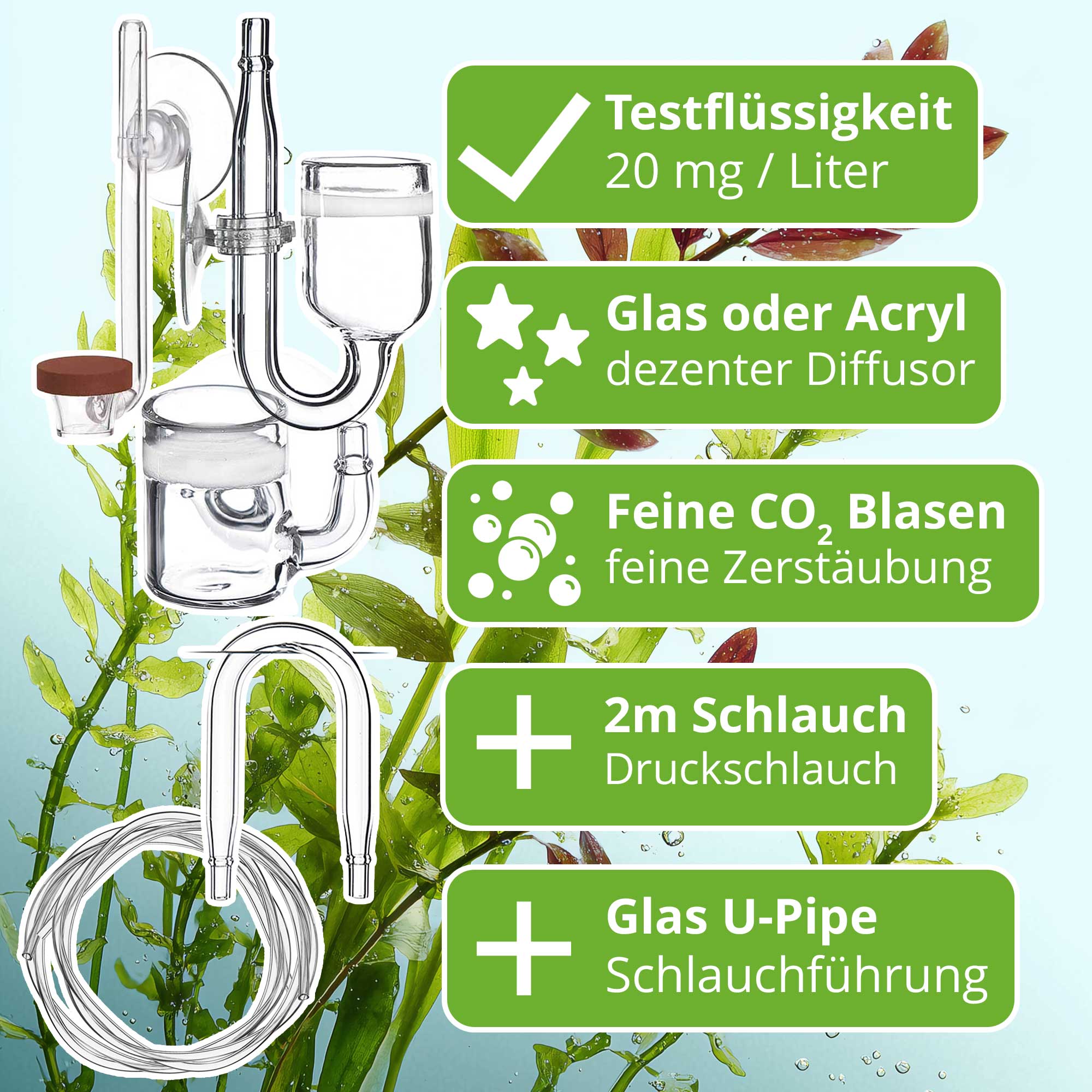 | 1 × CO₂-Dauertest inkl. 20 mg/l Testlösung | Zur permanenten Überwachung des CO₂-Gehalts im Aquarienwasser |