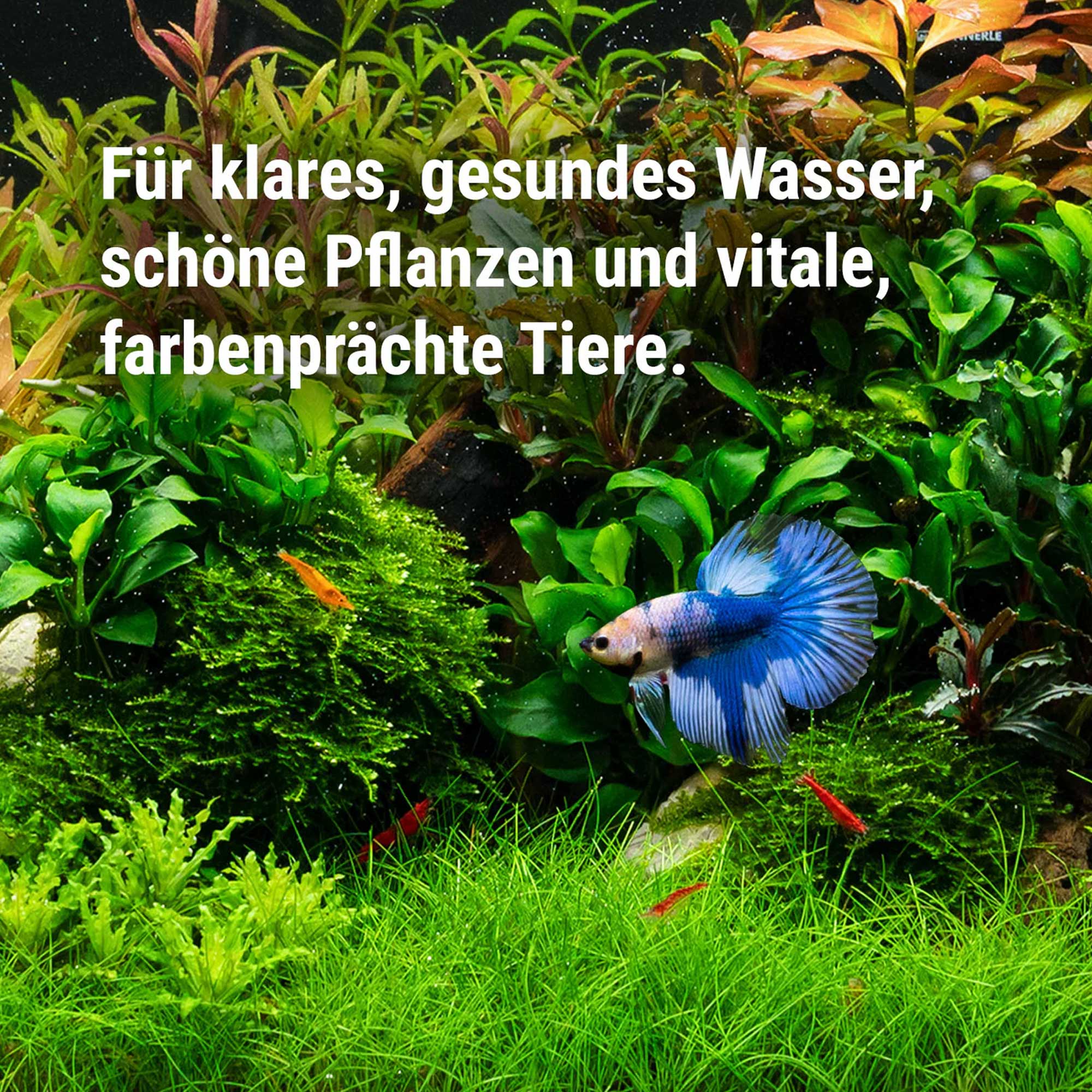 Das enthaltene Aqua Elixir bereitet Leitungswasser für den Einsatz im Aquarium auf. Chlor und Schwermetalle wie Kupfer oder Blei werden gebunden, sodass das Wasser für den Einsatz im Süßwasseraquarium geeignet wird