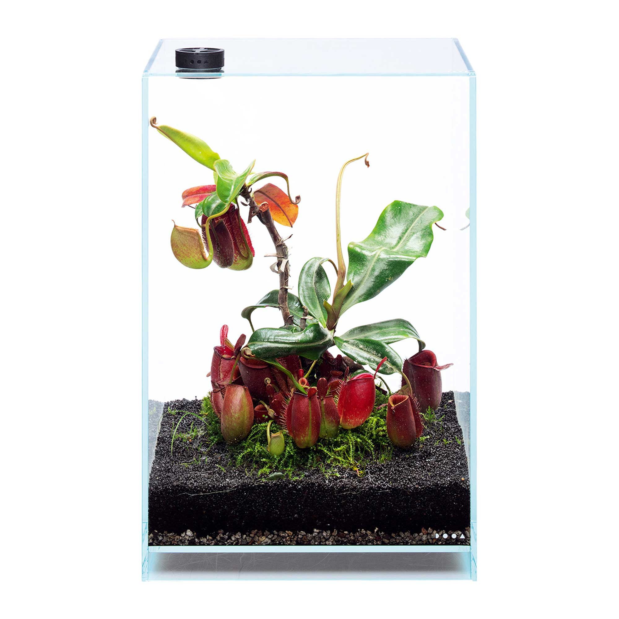 Das Glas-Cover sorgt für eine gleichmäßige Luftverteilung, verhindert übermäßige Kondensation und beugt Schimmelbildung vor. Gleichzeitig bleibt die Luftfeuchtigkeit im Inneren konstant hoch, was besonders bei geschlossenen Setups wie Paludarien oder Wabi-Kusa-Behältern entscheidend ist.