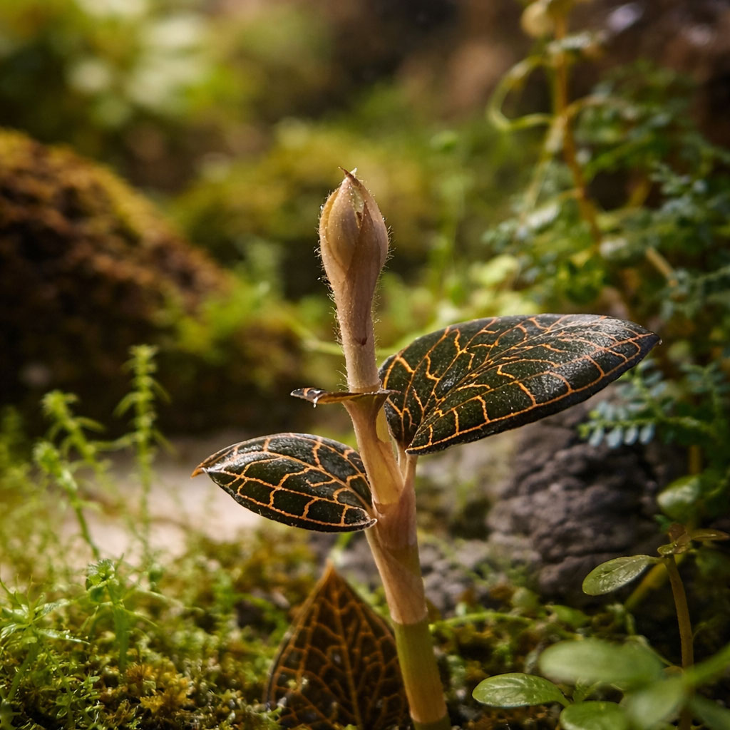 Pflege im Terrarium und Ansprüche Macodes Anoectochilus roxburghii "Firebird"