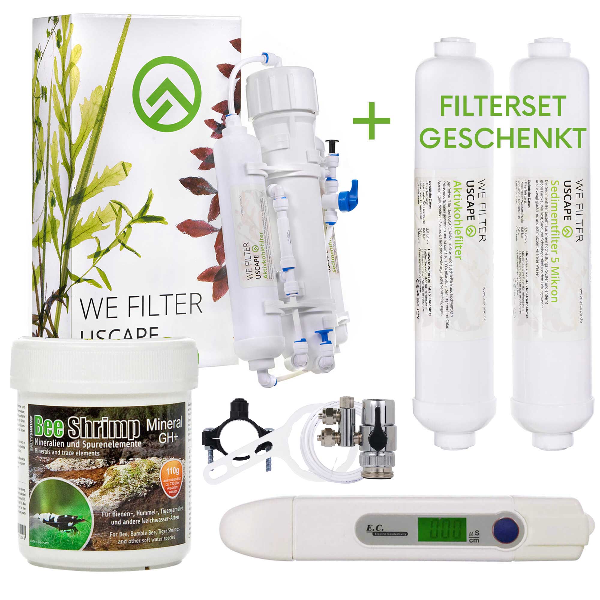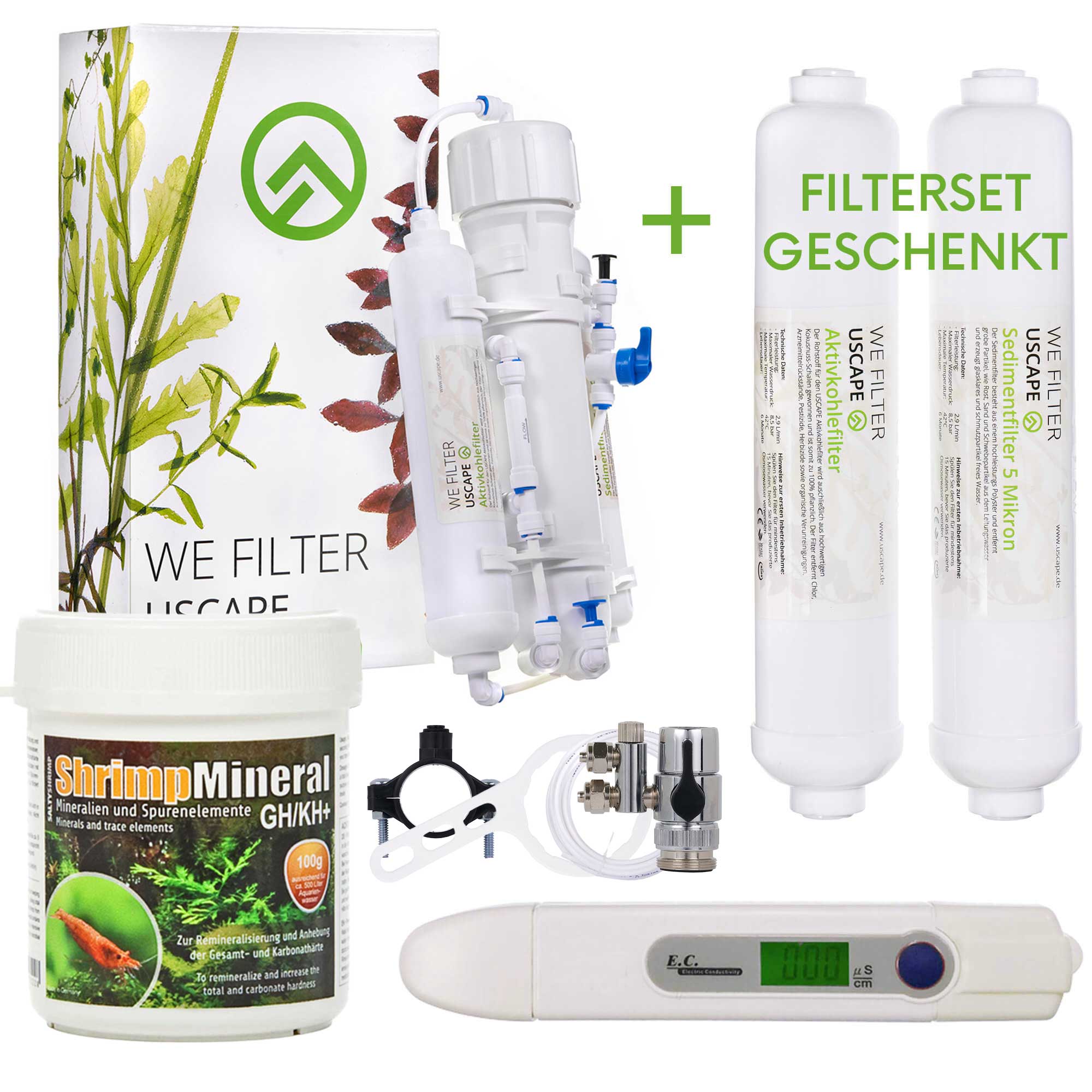 - Komplettlösung für Osmosewasser: Osmoseanlage, Leitwertmessgerät und Aufhärtesalz bereits im Set enthalten
