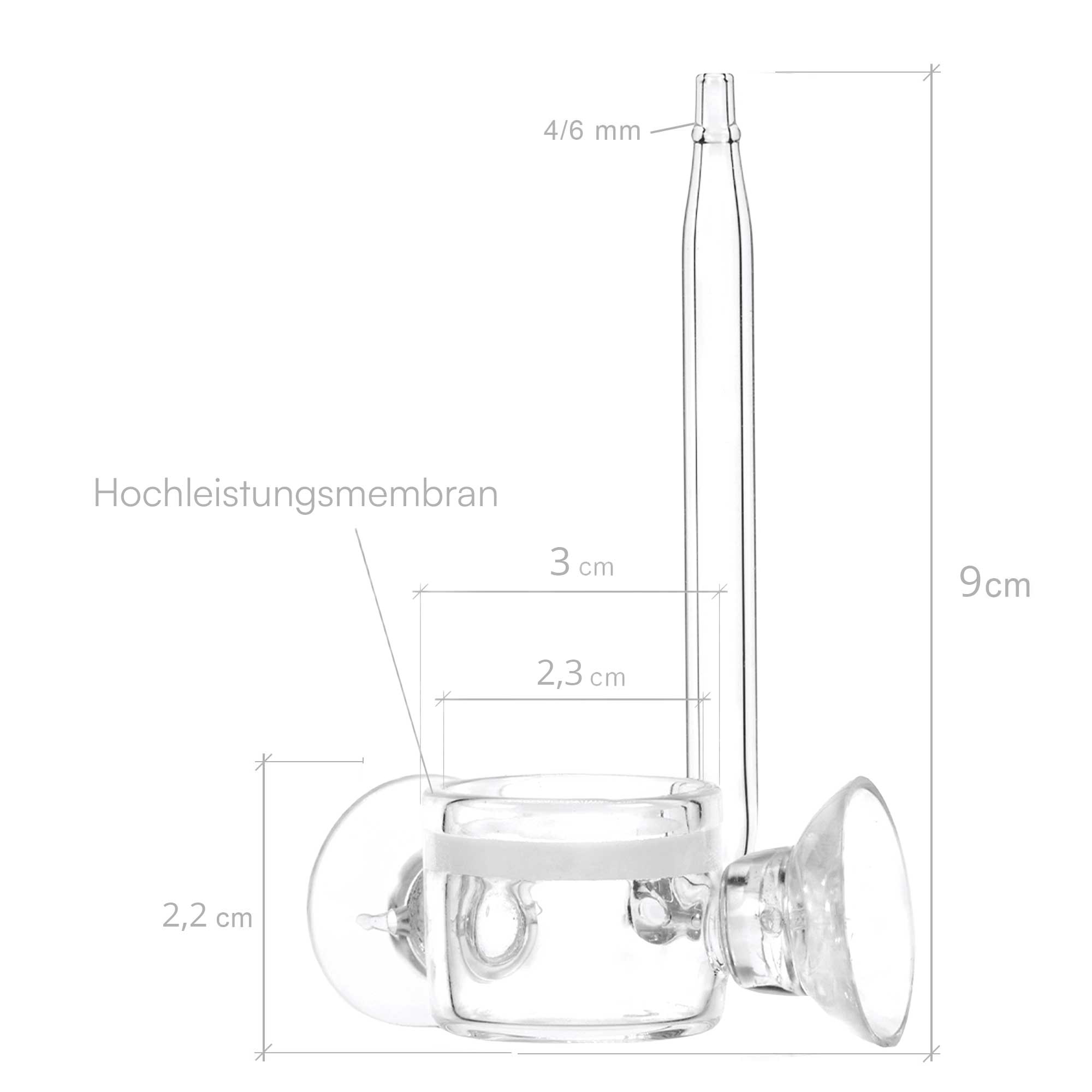 Wichtig: Bitte achte beim Anschließen darauf, keinen großen Druck auf den Diffusor auszuüben. Dadurch verhinderst du Glasbruch! Für Schlauchstrecken innerhalb des Aquariums (z.B. vom Diffusor zur U-Pipe) empfehlen wir dir, weichen Silikonschlauch zu verwenden.