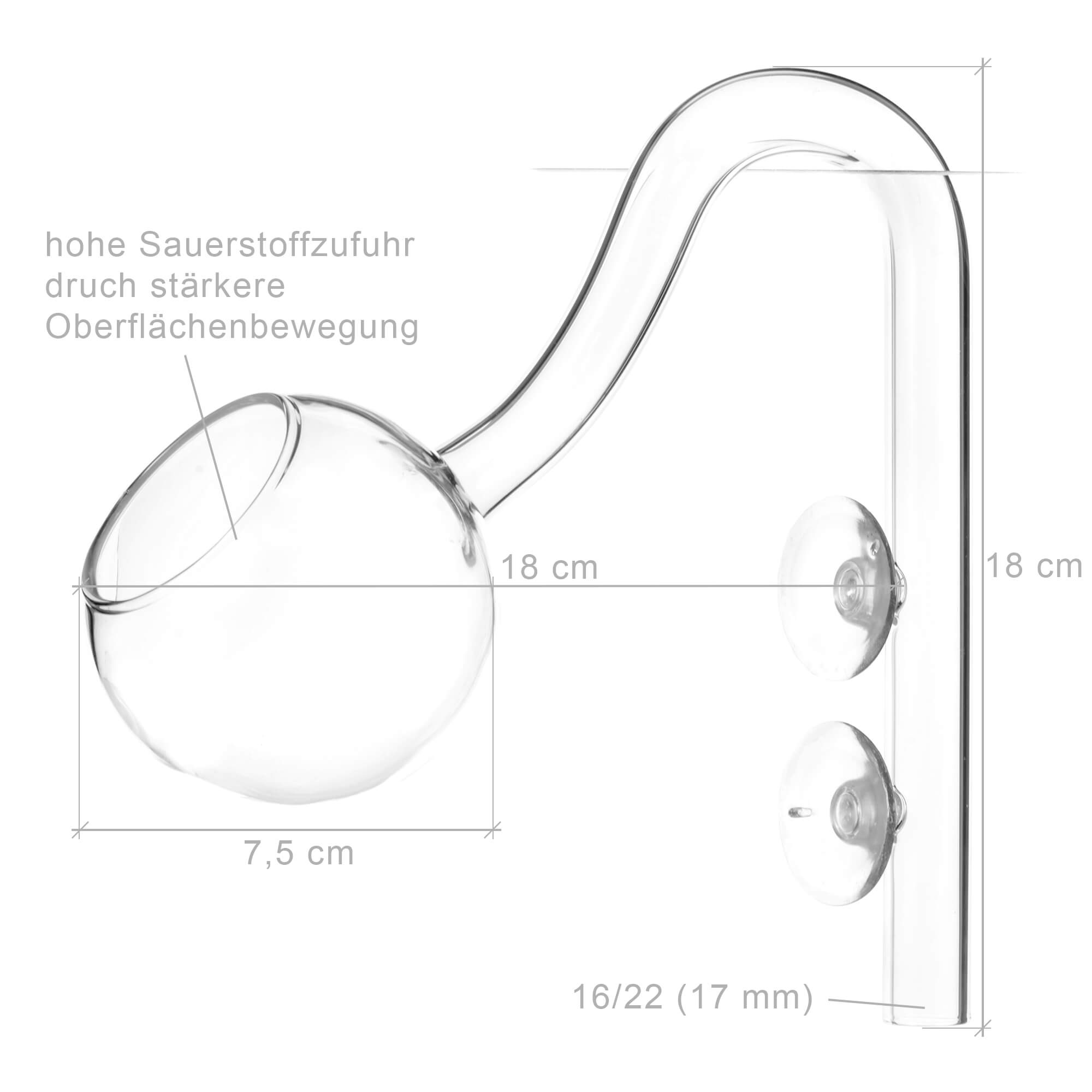 Der Moon Pipe Outflow Glas ist in zwei verschiedenen Größen erhältlich. Diese passen für die zwei gängigen Filterschlauch-Größen Ø13mm (12/16mm) und Ø17mm (16/22mm).